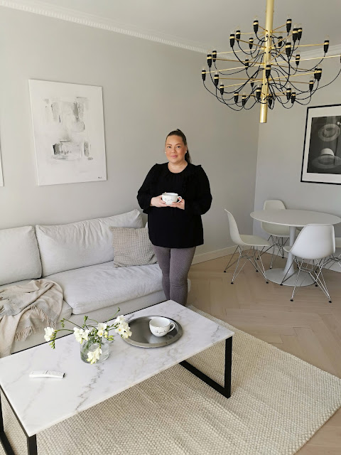 Sohvapöytä lähti uuteen kotiin viikolla. Laitoin meidän marmorisen sohvapöydän pari viikkoa sitten myyntiin ja yksi ystäväni osti sen. Sovittiin luovutus aikaisintaan mun synttäreiden jälkeen koska tarvittaisiin synttäreillä vielä sitä.